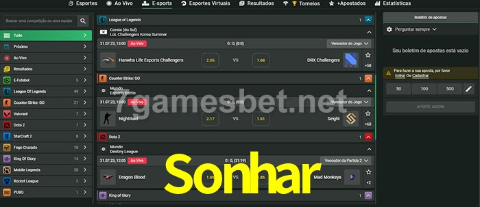 O Sonhar oferece uma grande seleção de opções de apostas em e-sports com probabilidades competitivas